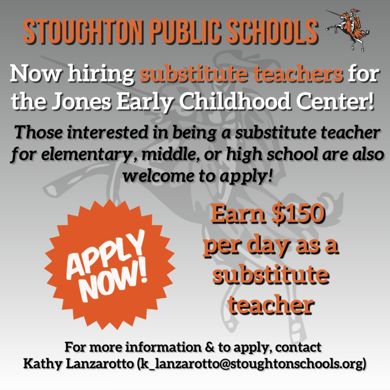 For more information and to apply, please contact Kathy Lanzarotto via email at k_lanzarotto@stoughtonschools.org.